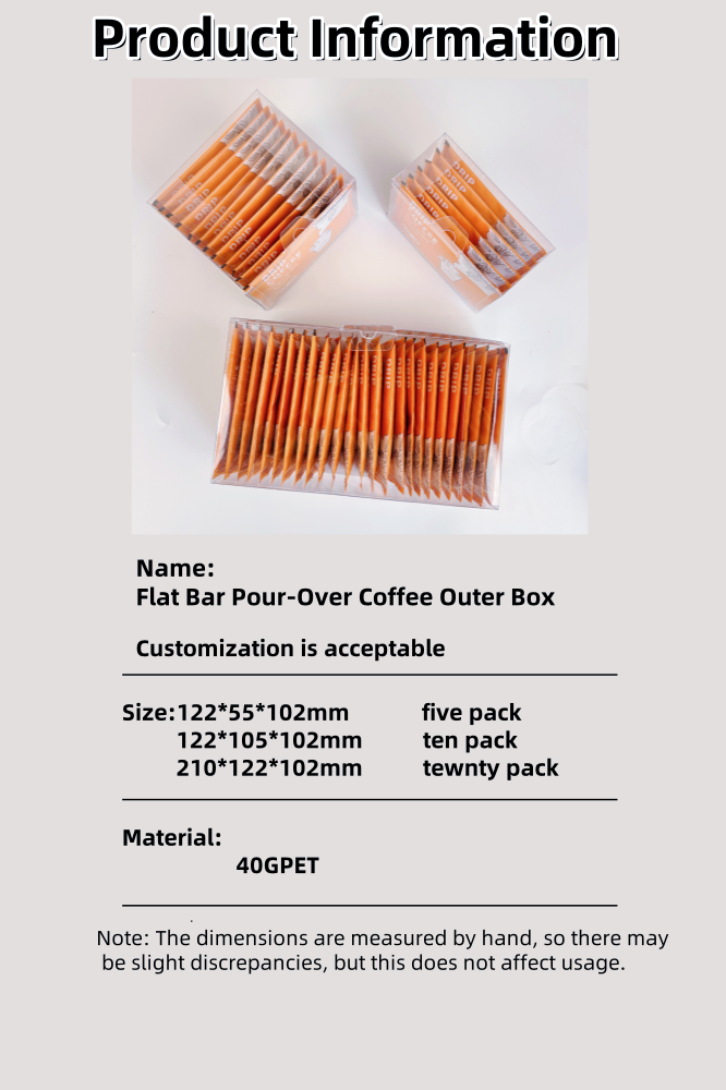 ගනුදෙනුකරුවන් සඳහා කෝපි පිටත බෑග් අභිරුචිකරණය කිරීම සඳහා, විනිවිද පෙනෙන පිටත කොටුවක් තෝරා ගැනීම, ඔබේ අභිරුචි කළ කෝපි පිටත බෑග් පැහැදිලිව දැකගත හැකිය.